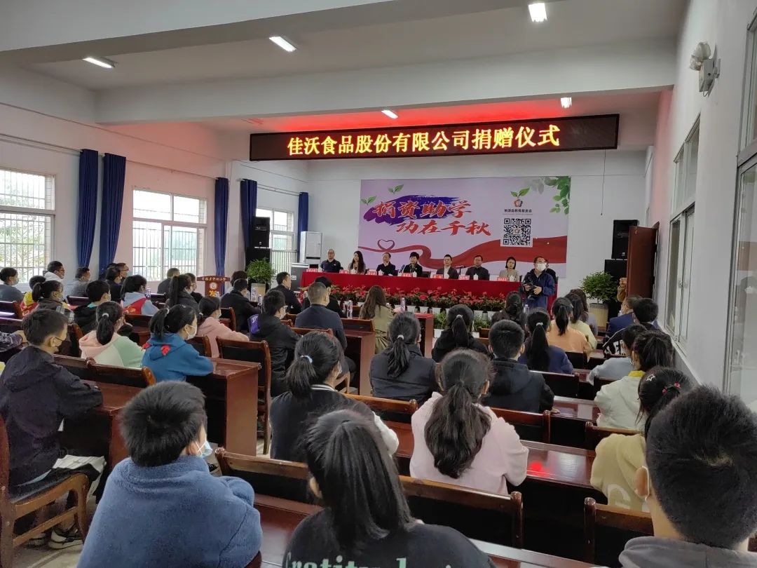 10月28日星期五上午,佳沃志愿服務(wù)隊(duì)抵達(dá)青林中學(xué),捐贈(zèng)儀式正式開始。捐贈(zèng)儀式由縣教育局局長易際兵主持,縣人民政府副縣長湯賽男、縣高新區(qū)黨工委書記羅飛東、縣教育基金會(huì)擬任理事長胡文科、縣教育基金會(huì)秘書長彭維民、受捐學(xué)校代表、青林鄉(xiāng)中學(xué)師生代表及佳沃食品股份有限公司代表出席本次儀式。活動(dòng)開始后,各方代表致辭,佳沃食品股份有限公司代表完成捐贈(zèng)協(xié)議簽署,并接受了桃源縣教育基金會(huì)代表的贈(zèng)牌。