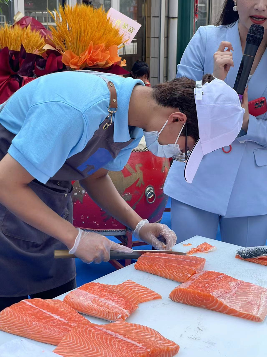 不久前開(kāi)業(yè)的煙臺(tái)牟平店,開(kāi)業(yè)時(shí)也在當(dāng)?shù)匾鹆宿Z動(dòng)。當(dāng)天,數(shù)百名消費(fèi)者聚集在新店門口,迫不及待體驗(yàn)新鮮的三文魚等新鮮料理食材。現(xiàn)場(chǎng)的開(kāi)魚儀式更是將開(kāi)業(yè)活動(dòng)推向的高潮,豐富多樣的鮮切料理和超值的優(yōu)惠活動(dòng)讓到場(chǎng)的“吃貨”滿意而歸。