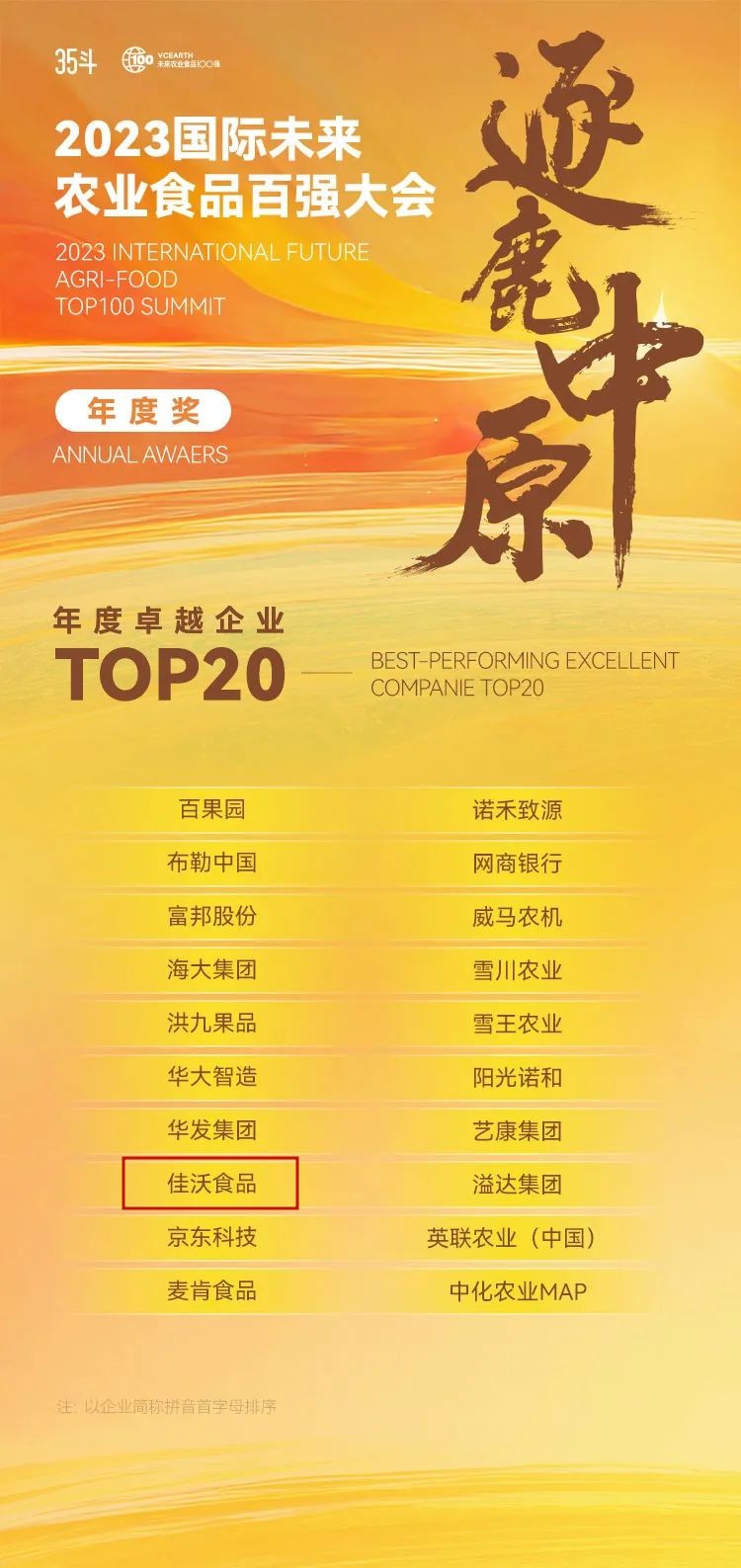 35斗2023國際未來農業食品百強大會,佳沃食品獲年度卓越企業獎