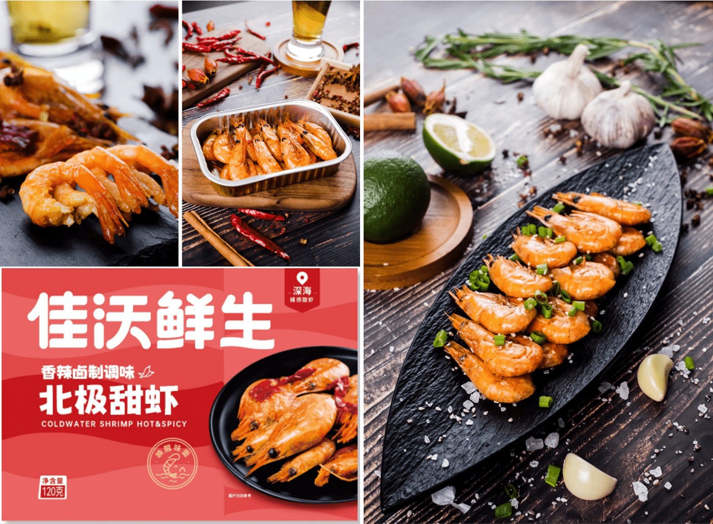 繼7月重磅推出“韓式柚子檸檬三文魚”和“三文魚鮮蝦蔬菜餅”兩款預制菜品后,佳沃鮮生如今又帶來一款健康、美味又便捷的即熱菜肴——“香辣鹵制調味北極甜蝦”。